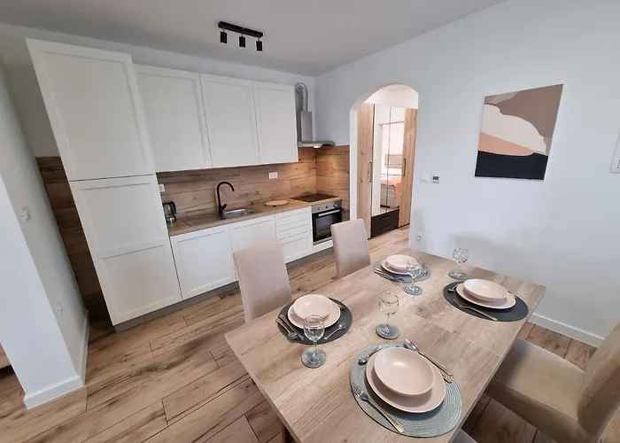 The apartment comes with coffee and tea making equipment and an equipped kitchen featuring a microwave, a refrigerator, and kitchenware. The 70 m^2 apartment is located a 15-minute drive from Zadar airport.